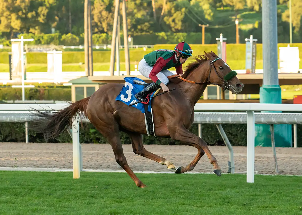 ARCADIA, Calif. (Jan. 18, 2026) — Grand Slam Smile became an eight-time stakes winner Saturday when winning the Sunshine Millions Filly & Mare Turf Sprint for California-breds. She’s never missed the board in 17 starts and has banked $828,120 for owners-breeders Larry and Marianne Williams.